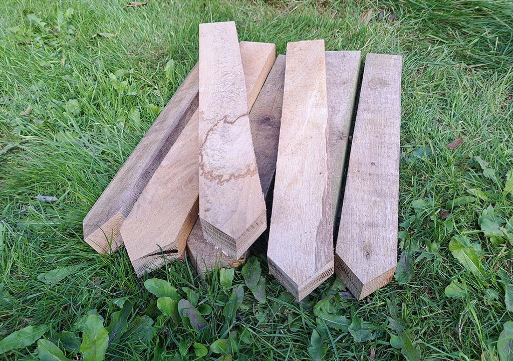 I denne udgave bygges hegnet af savskårne brædder 23x82mm (i faldende længder) og spidsede stolper 35x70mm, 50cm lange. Hegnet er ca 14cm højt (det skal ca 2 cm ned i jorden) og det har en forventet levetid på 15 år.