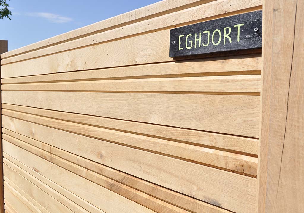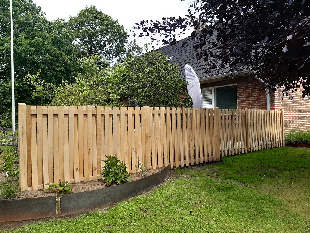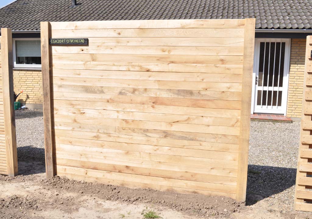 Lufttørret egetræ er et fantastisk naturmateriale til hegn. Det er smukt, stærkt, billigt, miljøvenligt, vedligeholdelsesfrit, og så har det helt naturligt en meget lang levetid.