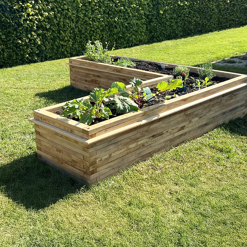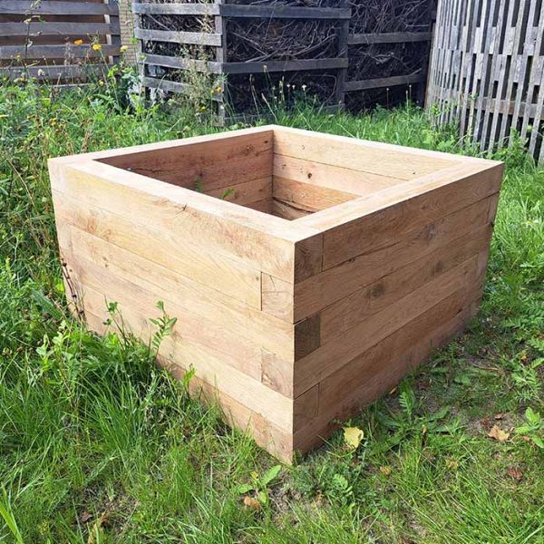 BIOBYGs Herregårdshøjbed laves i savskårne egeplanker. Dvs. at overfladen, før evt. pudsning, er lidt grovere end på høvlet træ, og at plankerne svinger lidt på mål. Ønsker man charmerende og levende højbede, kan man roligt læse videre. Ønsker man et mere ensartet udtryk, er vores Hertugindemodel i høvlede egetræsplanker et godt bud. Herregårdsmodellen er en elegant og meget solid konstruktion. Den laves af 3,5×7 cm planker, der vender, så siderne er 7 cm brede. Herregårdshøjbedet kan tåle at stå i det offentlige rum og har, uden vedligeholdelse, en forventet levetid på over 20 år.